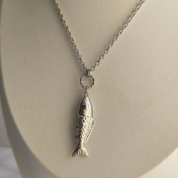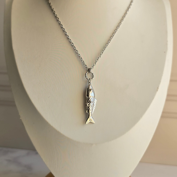 Collar don dije en forma de pez con detalles muy bonitos, cadena super larga.