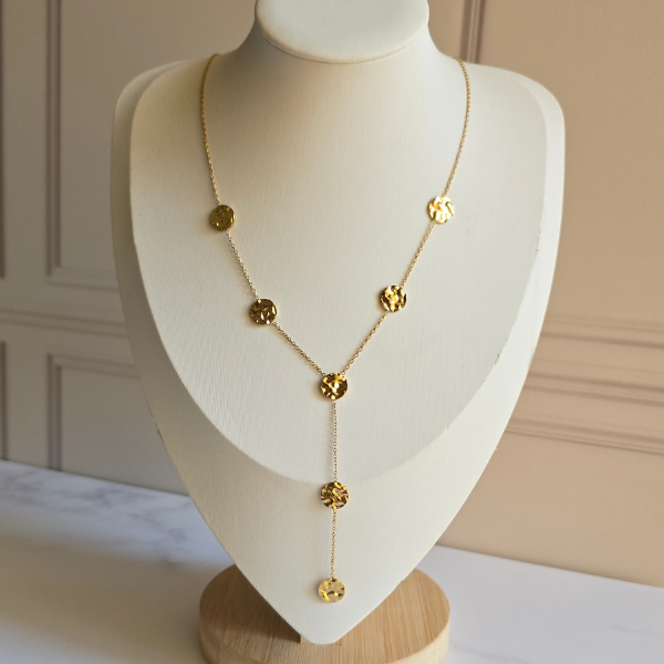 Corbatín Artemisa, tiene círculos dorados con un diseño martillado